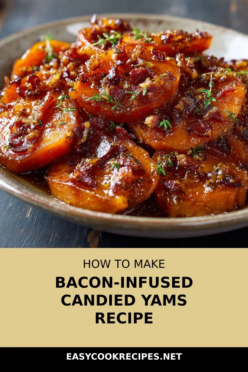 Serve the Candied Yams with Bacon as a hearty and indulgent side dish for Thanksgiving dinner, or elevate a casual weeknight meal by pairing it with juicy grilled chicken and vibrant garlicky greens. For a brunch spread, present this dish alongside fluffy biscuits and scrambled eggs to create a comforting and satisfying meal. To add a festive touch during winter, consider incorporating a splash of bourbon or fresh orange zest into the glaze for a warm and aromatic flavor.