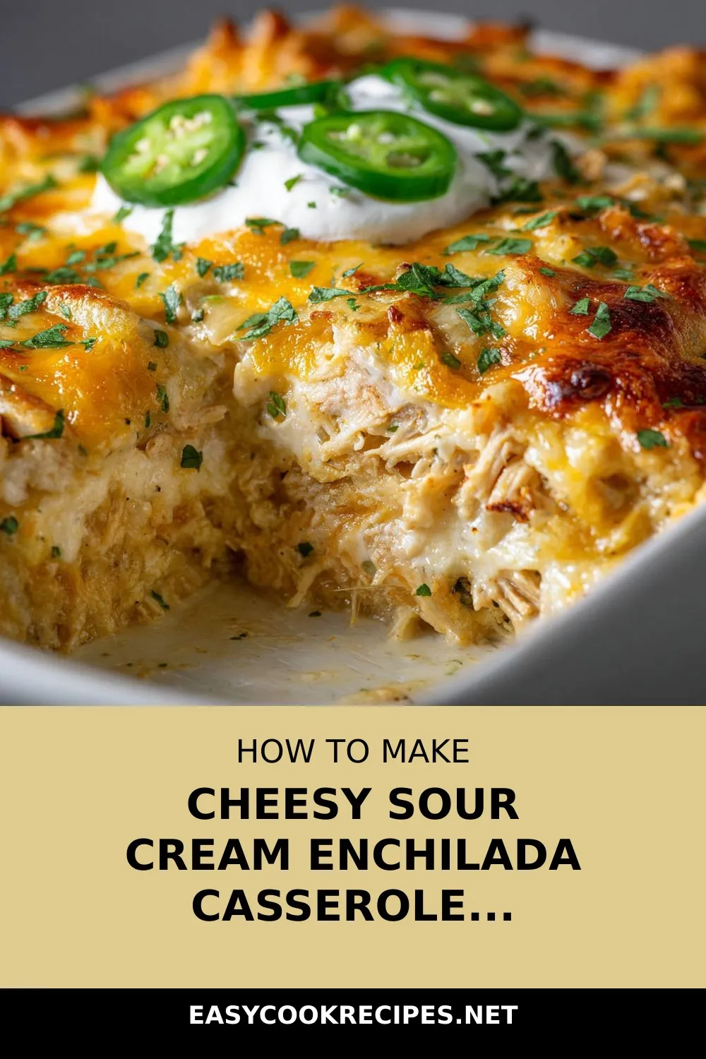 From neighborhood potlucks to casual holiday gatherings, this Sour Cream Enchilada Casserole has earned its place as a beloved staple on many tables. The creamy sauce, flavorful shredded chicken, and gooey cheese make for a winning combination that never fails to impress. Whether you’re hosting a party or simply craving a cozy meal at home, this casserole is sure to hit the spot.