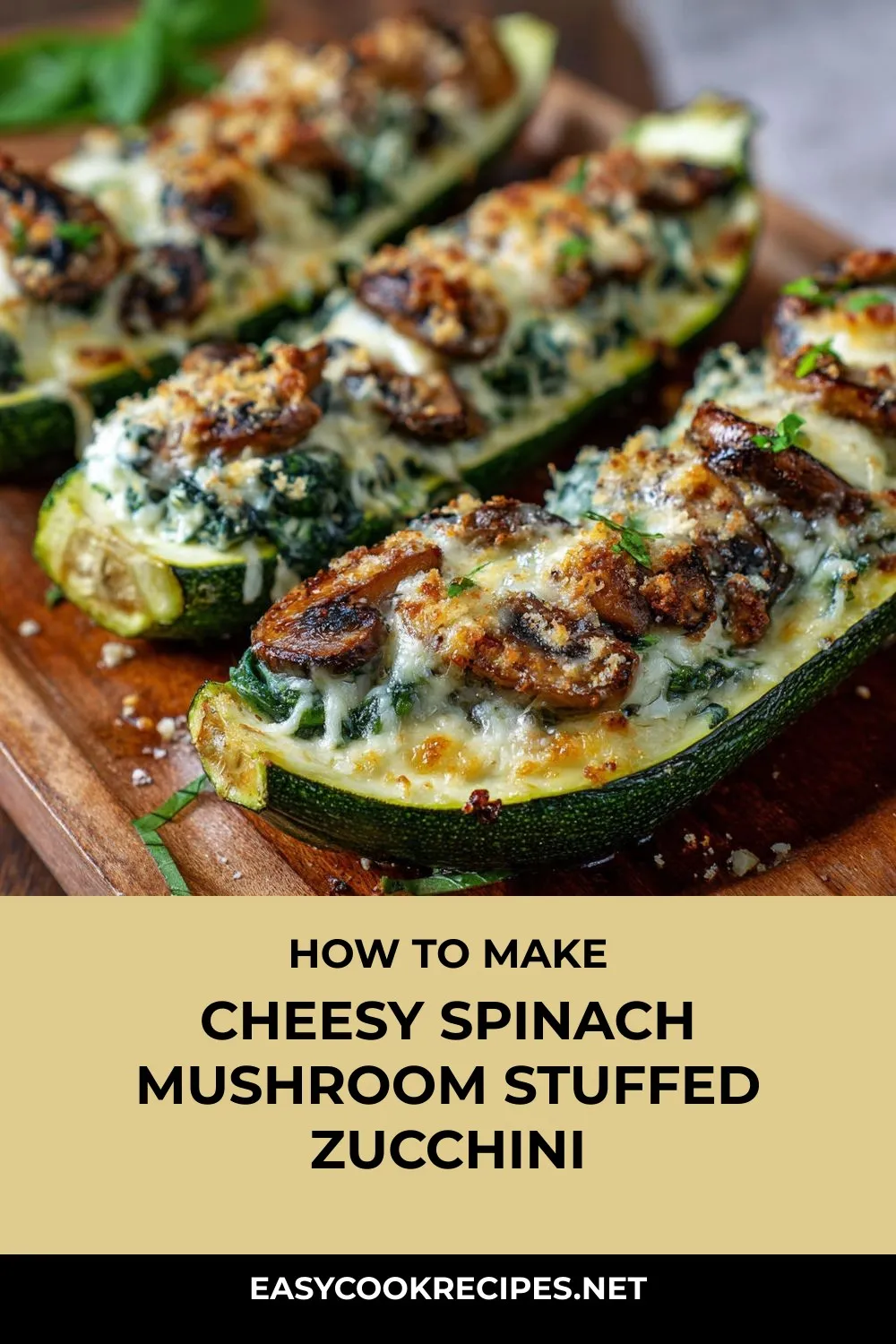 Cheesy Spinach Mushroom Stuffed Zucchini