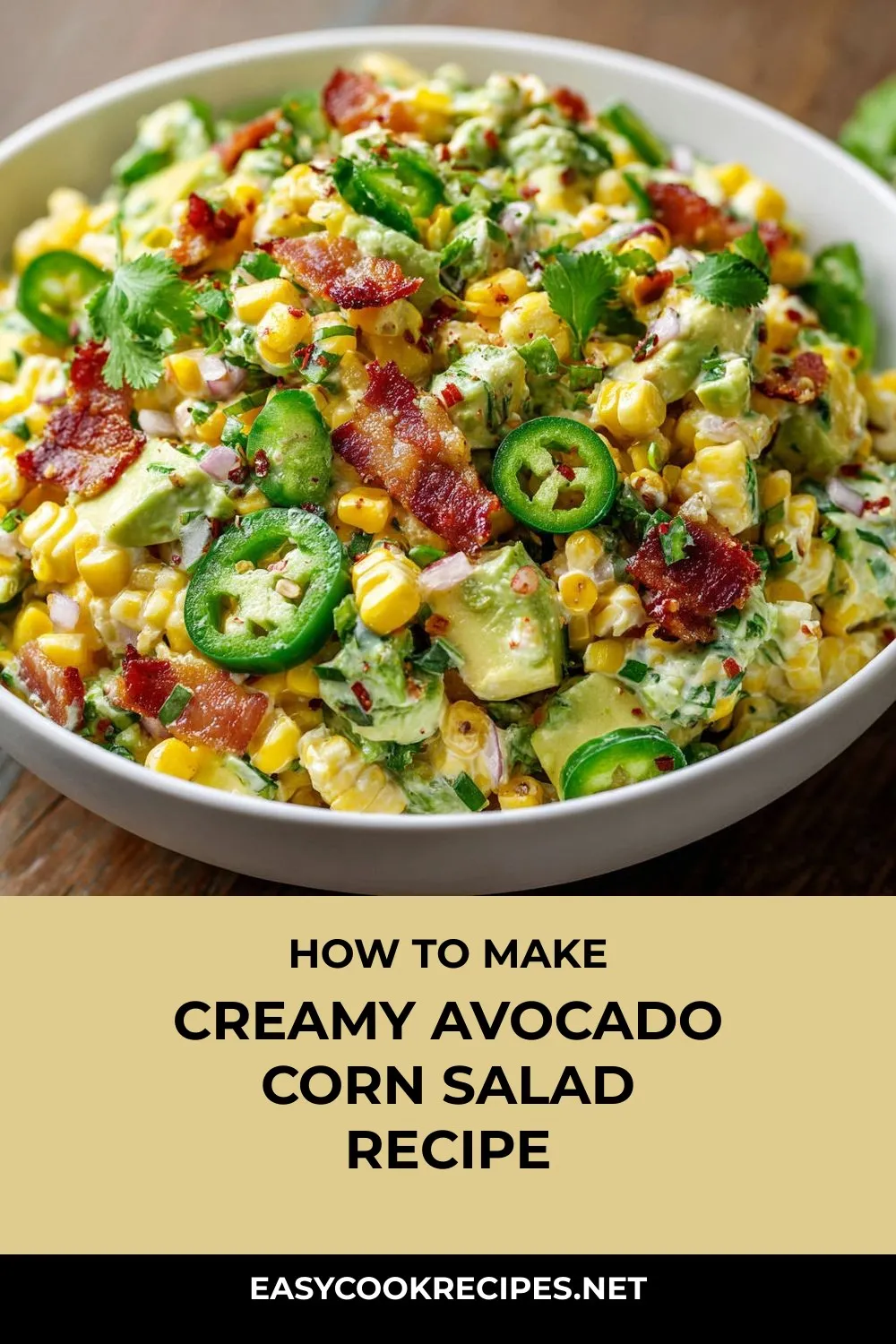 Creamy Avocado Corn Salad: A vibrant and creamy blend of fresh corn, avocado, crispy bacon, and zesty lime – your go-to summer salad!