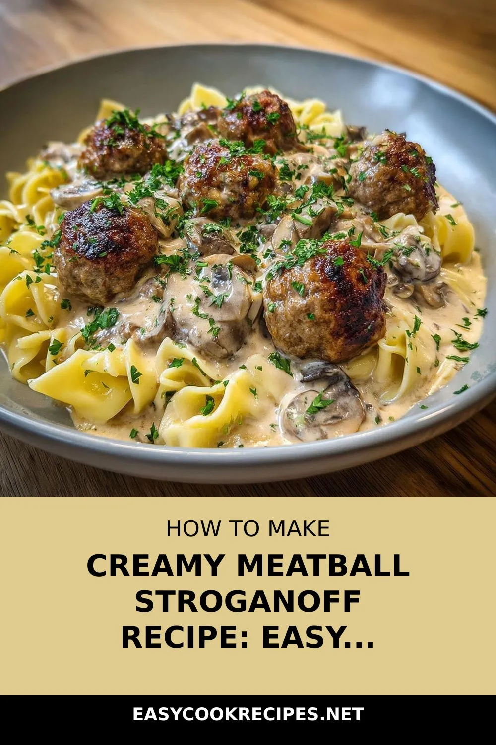 Serve this Meatball Stroganoff Dreamy Cream Sauce over a bed of buttery egg noodles, ensuring each strand is coated in the rich and velvety mushroom gravy. Garnish with a generous sprinkle of freshly chopped parsley for a pop of color and freshness. For an extra indulgent touch, pair this comforting dish with a side of garlic butter-brushed crusty bread, perfect for soaking up every last bit of the creamy sauce.