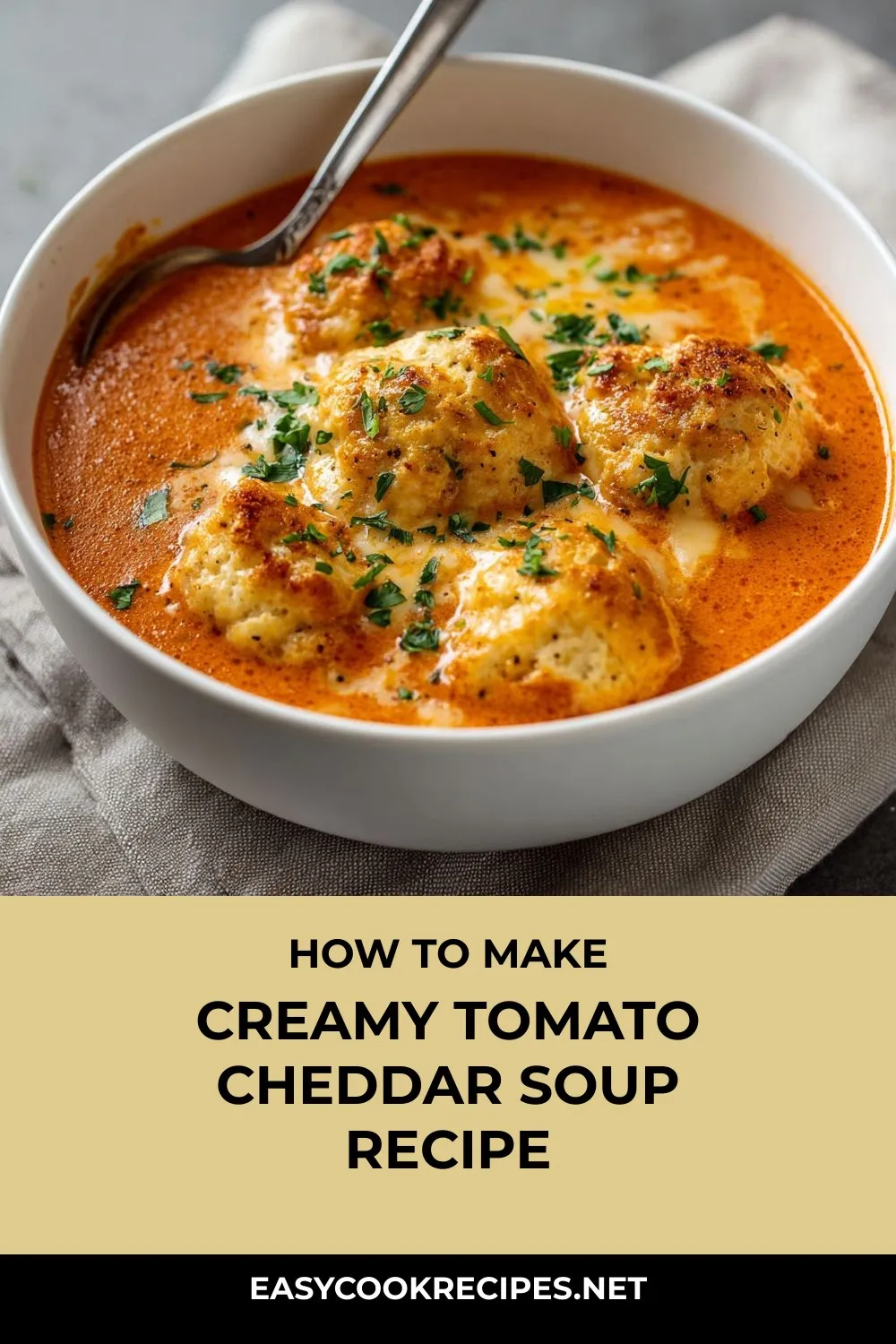 Whether you’re looking for a quick weeknight meal or a crowd-pleaser for gatherings, this Tomato Soup with Cheddar is sure to hit the spot. With a few simple ingredients and easy steps, you can recreate this comforting bowl of goodness in your own kitchen. So, grab a spoon, savor each cheesy dumpling, and let this soup wrap you in a cozy embrace—it’s a hug in a bowl that promises to make any night feel special.