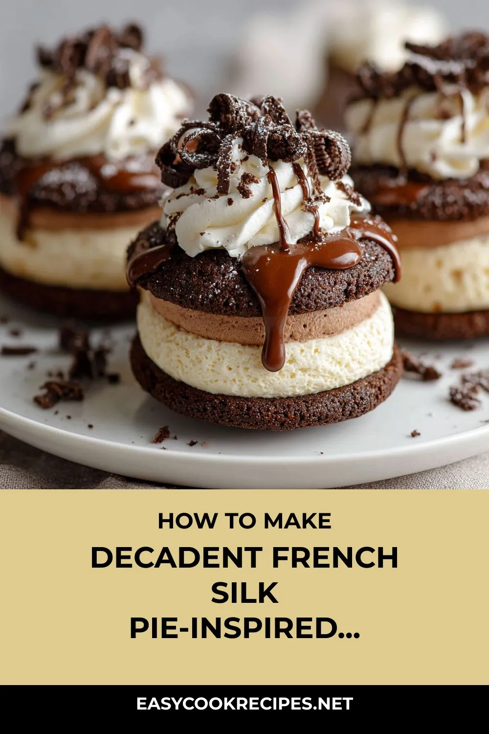 For the best results, assemble the French Silk Pie Cookies before serving to ensure the optimal texture. If preparing ahead of time, chill your mixing bowl and beaters before whipping the cream for a stable and silky finish. Additionally, keep the finished cookies refrigerated for several hours to allow the mousse to firm up and the flavors to meld, enhancing the overall taste experience.