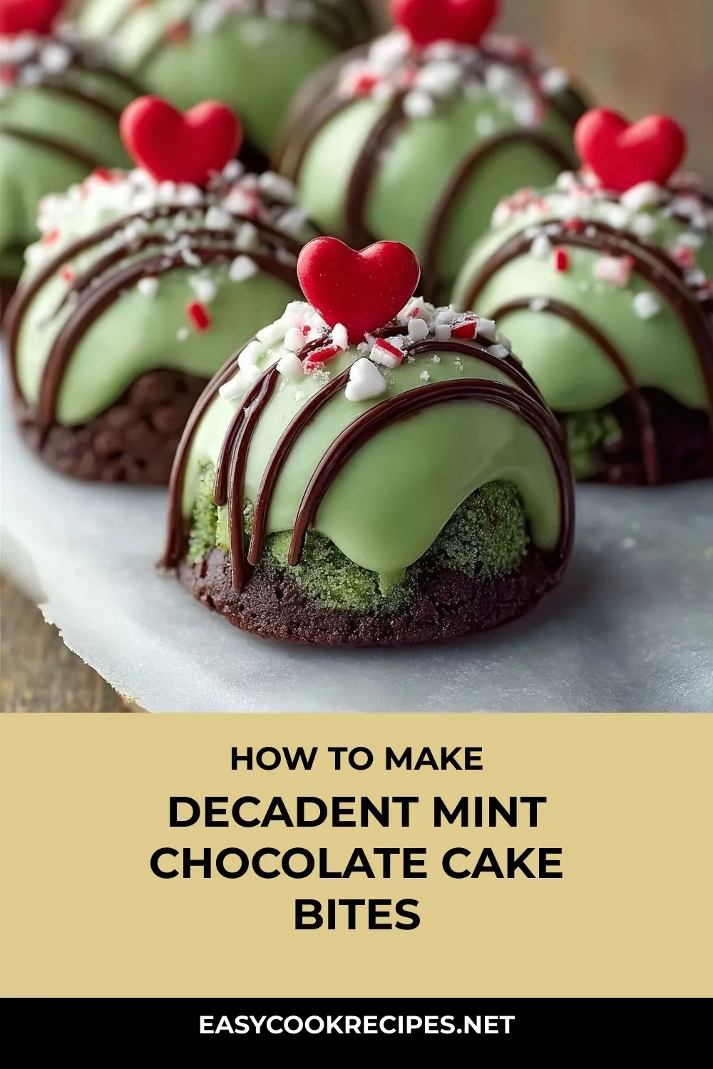 With a festive coating of green candy melts or white chocolate tinted with green coloring, these Mint Chocolate Cake Bites are not only delicious but also visually appealing. Decorate them with holiday sprinkles and candy hearts for that extra festive touch. Whether you enjoy them fresh or freeze a batch for later, these cake bites are the perfect indulgence for any time of year. So, roll up your sleeves, get creative with the decorations, and savor every bite of these delightful Mint Chocolate Cake Bites!