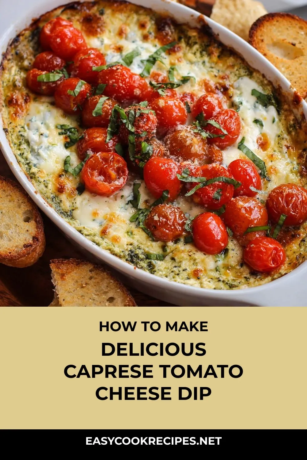 “Melty cheese meets juicy tomatoes and fresh basil in this bubbly Caprese Cheese Tomato Dip, a crowd-pleasing appetizer perfect for any gathering.”