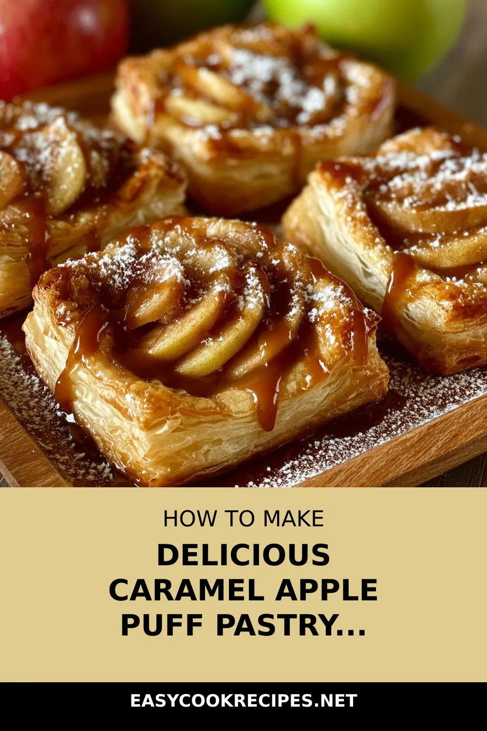 For the best results when making Caramel Apple Puff Pastries, choose Granny Smith or Honeycrisp apples for their flavor and ability to hold shape during baking. Ensure the apple filling is cooled before adding it to the pastry to maintain a flaky texture. Brushing the puff pastry with an egg wash before baking will give it a shiny, golden-brown crust, enhancing its visual appeal.