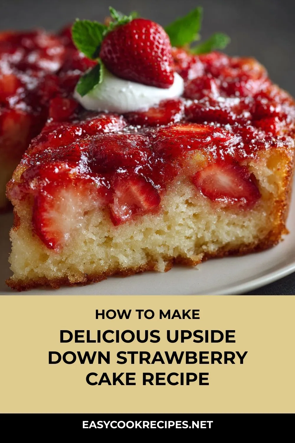For a creative serving suggestion, consider garnishing your upside down strawberry cake with a sprinkle of lemon zest or a drizzle of balsamic reduction to enhance the fruity flavors. You can also serve each slice with a dollop of freshly whipped cream infused with a hint of vanilla or a scoop of tangy Greek yogurt for a delightful contrast in textures.