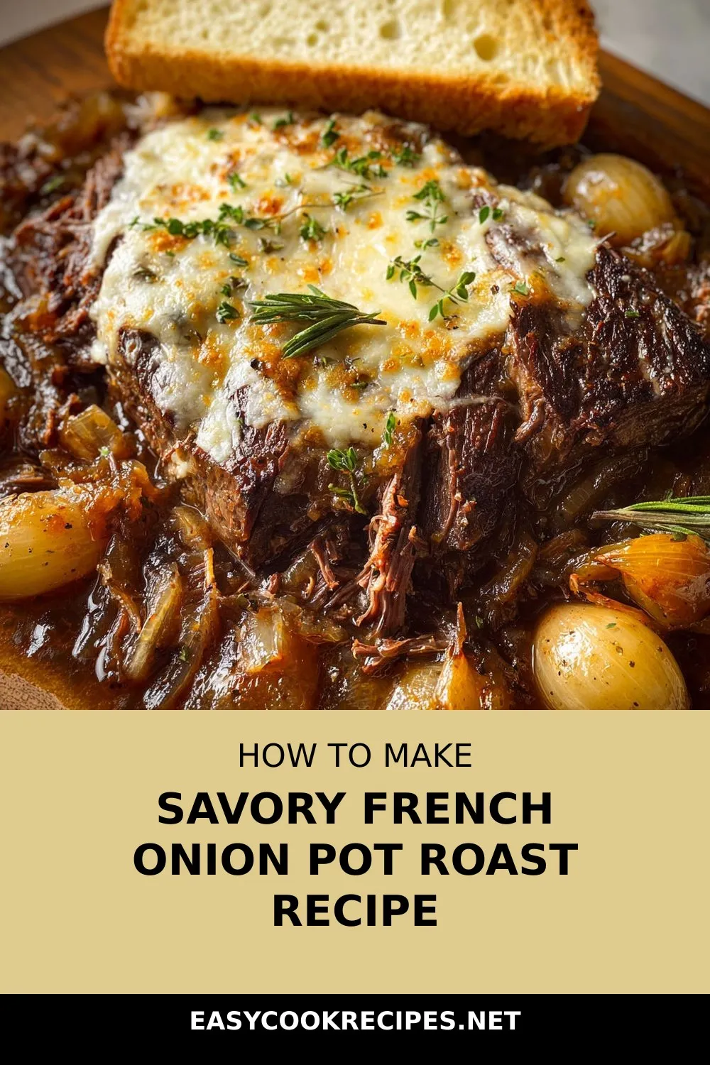 Serve the French Onion Pot Roast over creamy mashed potatoes or alongside a side of crusty bread to soak up the flavorful juices. For a balanced meal, pair it with a simple green salad dressed with mustard vinaigrette. This dish beautifully combines the comforting flavors of French onion soup with the heartiness of a slow-cooked pot roast, resulting in a timeless and elegant culinary creation.