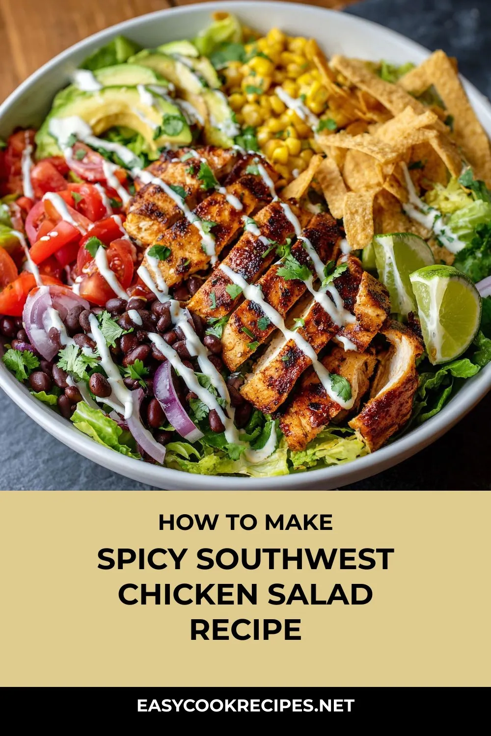I hope this Spicy Southwest Chicken Salad recipe brings a burst of flavor and excitement to your mealtime. Whether it’s a quick lunch or a relaxed dinner, this vibrant salad is sure to delight your taste buds with its zesty chicken and creamy spicy ranch dressing. Don’t hesitate to customize it with your favorite proteins or veggies to make it your own!