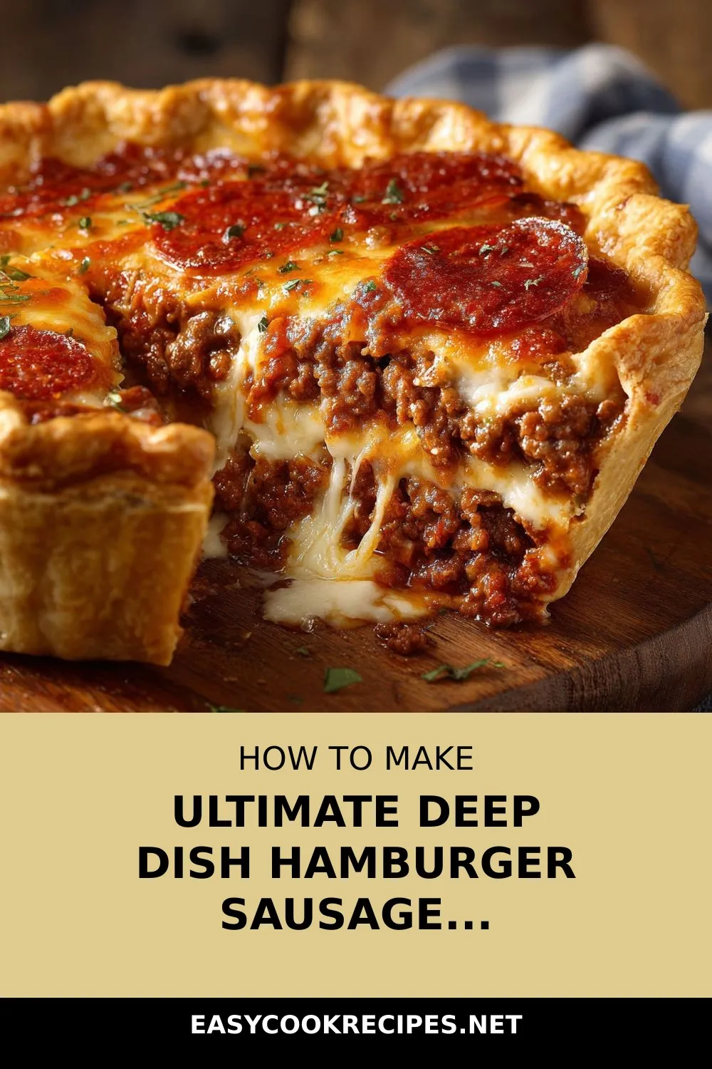 Are you ready to embark on a culinary journey that combines the best of a hearty burger and a classic pizza? Look no further than this Deep Hamburger Sausage Pepperoni Pie! This savory marvel features layers of flavorful ground beef, zesty Italian sausage, and crispy pepperoni tucked between gooey layers of mozzarella and cheddar cheese, all nestled within a golden garlic butter crust.